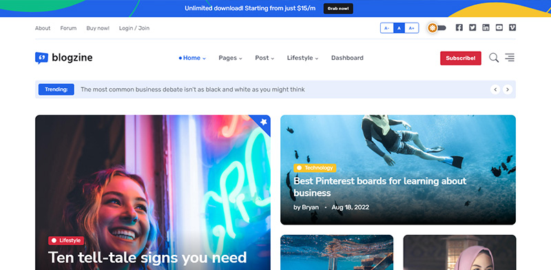 The next-generation blog, news, and magazine theme for you to start sharing your content today with beautiful aesthetics! This minimal & clean Bootstrap 5 based theme is ideal for all types of sites that aim to provide users with content. #bootstrap #StackBros